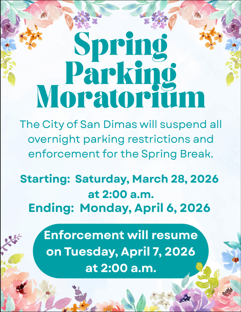 City of San Dimas • 245 East Bonita Avenue • San Dimas, CA 91773 • 909-394-6200 City Hall Hours: Monday thru Thursday 7:30 a.m. to 5:30 p.m. • Friday 8:00 a.m. to 5:00 p.m.